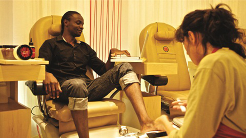 Letrice Lopez, chủ tiệm L.A. Spa on the Go cũng cho rằng bàn chân nam giới thường hay bị ướt đẫm mồ hôi giống như vận động viên nên hãy khuyên họ làm móng thường xuyên và cung cấp các loại kem, thuốc xịt giúp họ điều trị tình trạng này. Còn với Bayarmaa Ekhtavian, cô giảm nhẹ căng thẳng trên bàn chân khách hàng bằng cách bấm huyệt, xoa bóp và hỗ trợ điều trị móng mọc ngược.